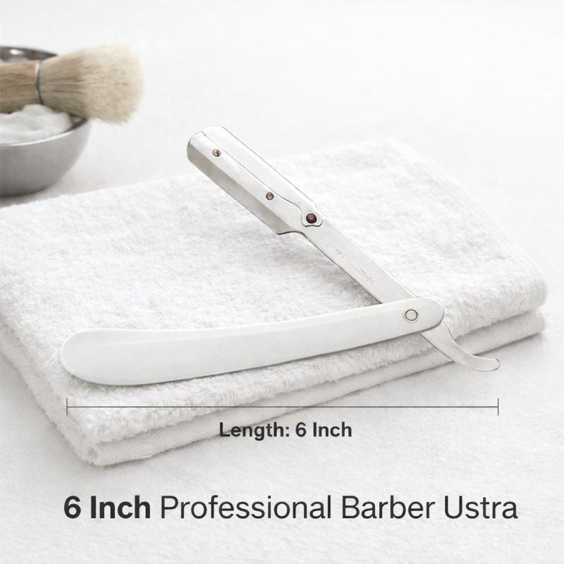 This 6 inch professional barber ustra razor is crafted from high-quality stainless steel for smooth, precise, and controlled shaving. Designed for barbers, salons, and personal grooming, this straight razor delivers excellent balance, grip, and durability.